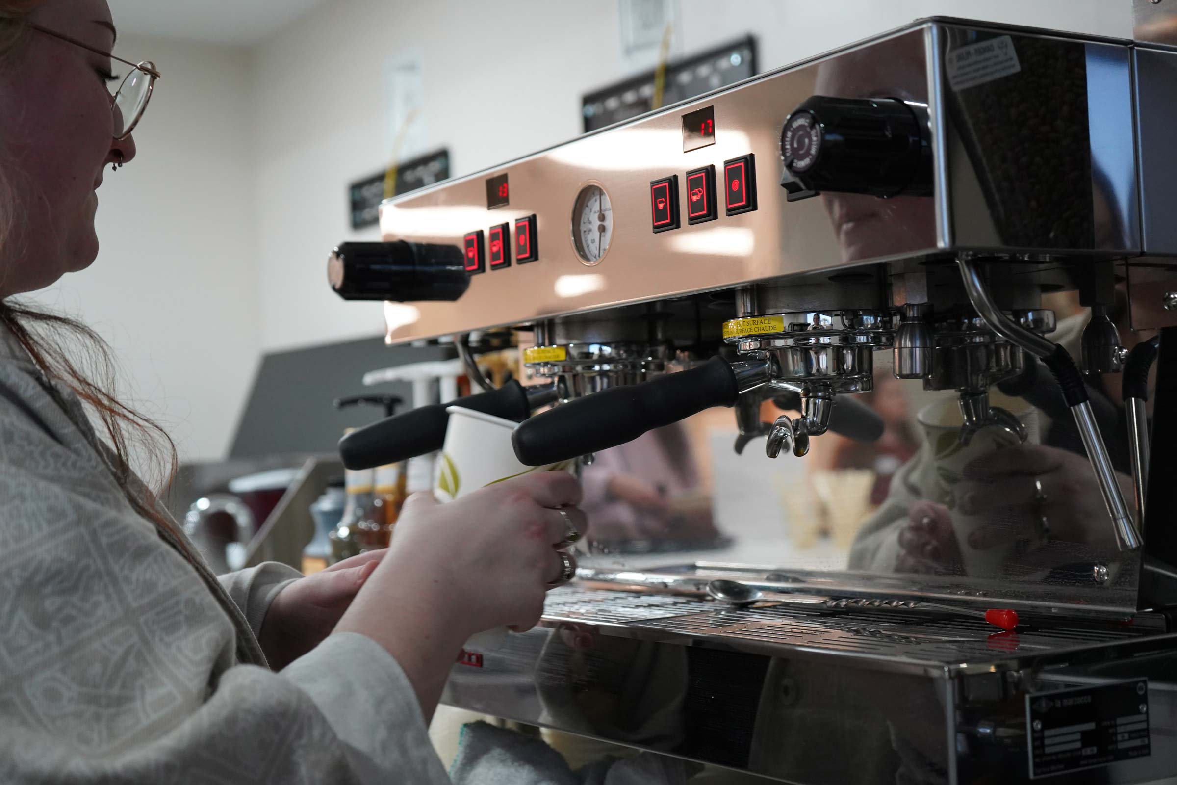 A cozy coffee shop with a full espresso bar, snacks, and grab-and-go meals.